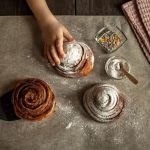 Colocamos el brioche enroscado en la bandeja del horno, previamente forrada de papel, y dejamos reposar hasta que doble su volumen. Una vez haya pasado el tiempo de reposo, pintamos el círculo con las yemas de huevo y horneamos unos 25 minutos a 180ºC. Cuando veamos que comienza a dorarse, sacamos del horno, dejamos enfriar ligeramente y, ¡lista para degustar!