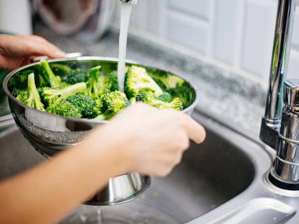 - Para el lavado, colocar las verduras debajo del grifo de agua corriente sin jabón ni detergentes siempre antes de ser peladas o de retirar sus tallos. No obstante, en el caso del brócoli o la coliflor, por ejemplo, debemos quitar primero sus hojas y tallos para poder limpiar bien.