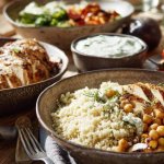 - Jueves: garbanzos con pollo guisado y verduras, servido con una cucharada de yogur cremoso.