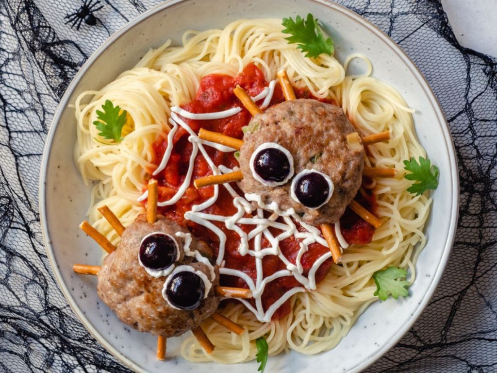 Tranquilo, no te estamos recomendando que le hagas espaguetis con araña a tus hijos. Solamente, que conviertas el clásico plato de espaguetis boloñesa en una terrorífica creación de Halloween. ¿Cómo? en vez de poniendo albóndigas, al estilo neoyorquino, haz una especie de filete ruso ydecora encima aceitunas negras para los ojos y algo alargado como los picos para que sean las patas.