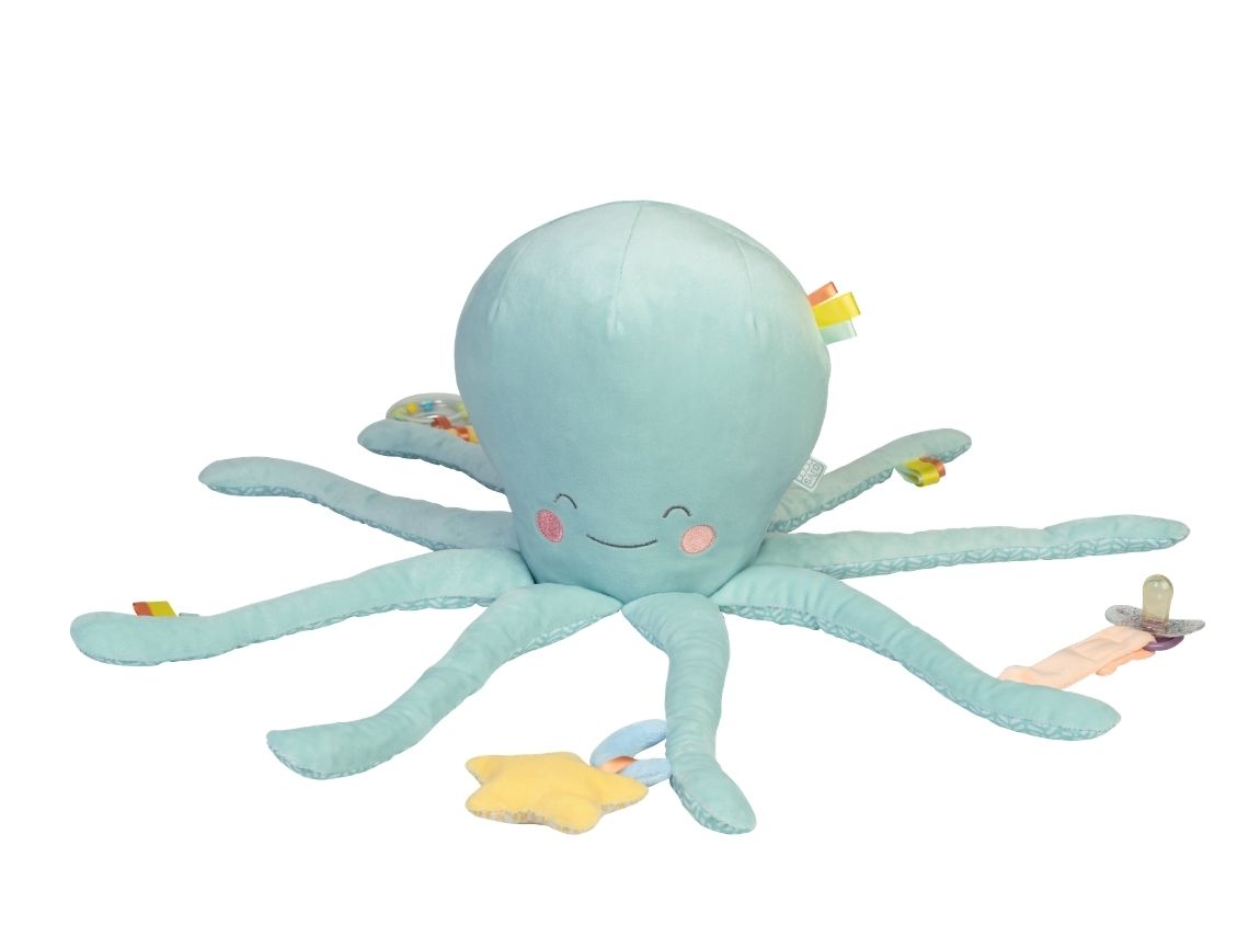 Siempre es una buena opción. Y si es gigante, como este de Saro Baby, el acierto está asegurado. Es suave y cariñoso y sus tentáculos esconden mil sorpresas para poner la imaginación en marcha: un sonajero, un espejito, texturas, sonidos y mucho más. Perfecto para estimular la psicomotricidad de bebés y niños y ayudar a coordinar los reflejos visuales y auditivos.