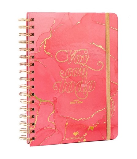La Vecina Rubia también ha sacado su colección de agendas de cara al curso escolar 2023/24 y esta se ha colado entre las más vendidas entre las jóvenes, y es que tiene un diseño con inspiración japonesa plasmada en una composición floral muy bonita. En portada tenemos también una de las clásicas frases de La Vecina Rubia: “Voy con todo”.