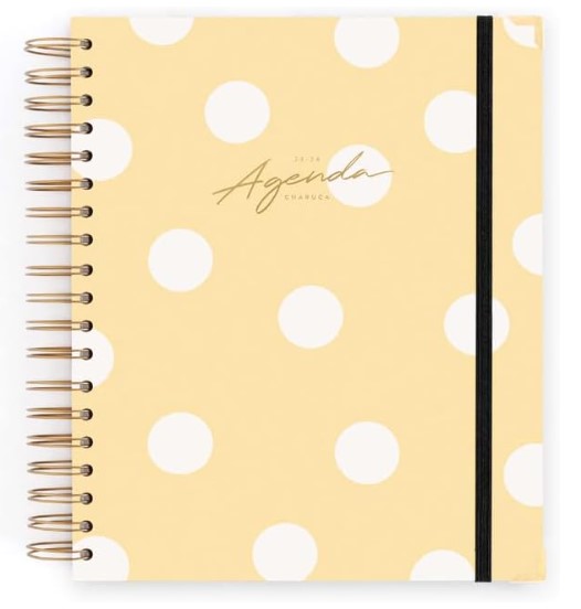 De la marca Charuca también puedes encontrar una gran cantidad de modelos de agendas escolares, pero entre todas ellas a nosotros nos ha encantado este diseño en color vainilla, tremendamente bonito y también resistente ya que tiene refuerzos dorados en las esquinas.