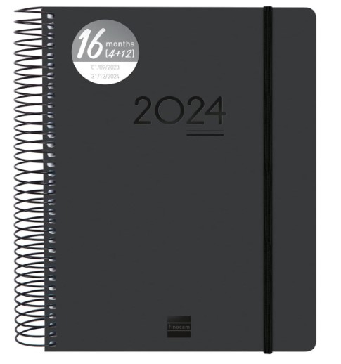 Uno de los modelos más básicos que os vamos a recomendar es esta agenda de la marca Finocam 2023/2024, y es que su diseño es muy simple, pero el contenido que ofrece es muy eficaz a la hora de poder planificar tus tareas durante el curso escolar. Lo primero que hay que destacar es que contiene 16 meses, a diferencias de la mayoría de las agendas escolares que van desde septiembre del 2023 hasta julio/agosto del 2024. Este modelo va desde septiembre 23 hasta diciembre 24.