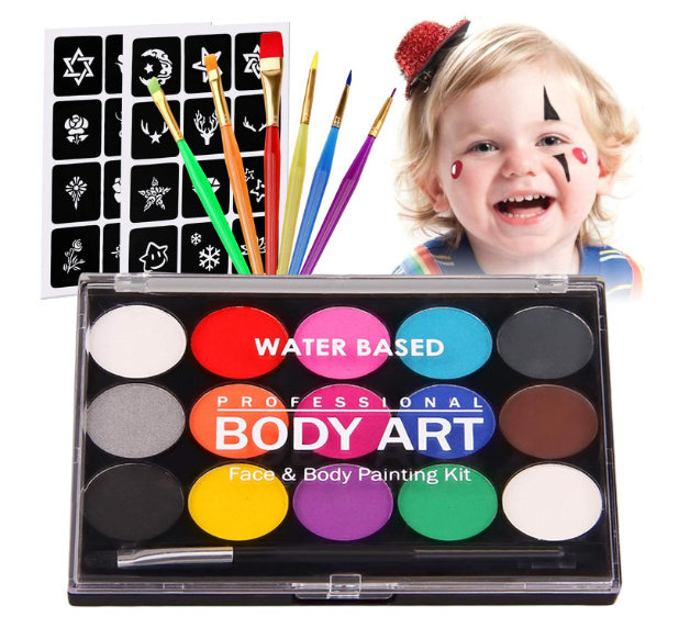 Se trata de un kit de pintura que cuenta con los colores primarios por lo que es posible crear nuevos tonos si decidimos mezclarlos. Además, incluye un set de 7 pinceles de diferentes grosores con los que podemos rellenar, perfilar o rematar los últimos detalles. Si no tienes tiempo para pensar qué diseño hacer, puedes usar una de las 24 plantillas faciales que incluye el kit.
