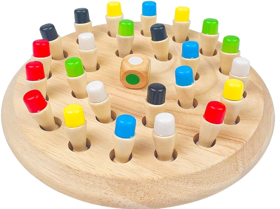 En este caso, os traemos un producto que cuenta con un sencillo diseño de madera, el cual incluye 24 piezas, el tablero y un dado con diferentes colores que coinciden con los de las fichas. Las instrucciones del juegos son muy básicas: una vez hemos colocado todas las piezas en el tablero de manera que los colores queden cubiertos, por turnos tiraremos el dado y sacaremos las piezas en función del color que este nos indique. Es decir, debemos prestar atención a los colores que saca el contrincante e intentar memorizar su ubicación en el tablero para poder reunir el mayor número de piezas.