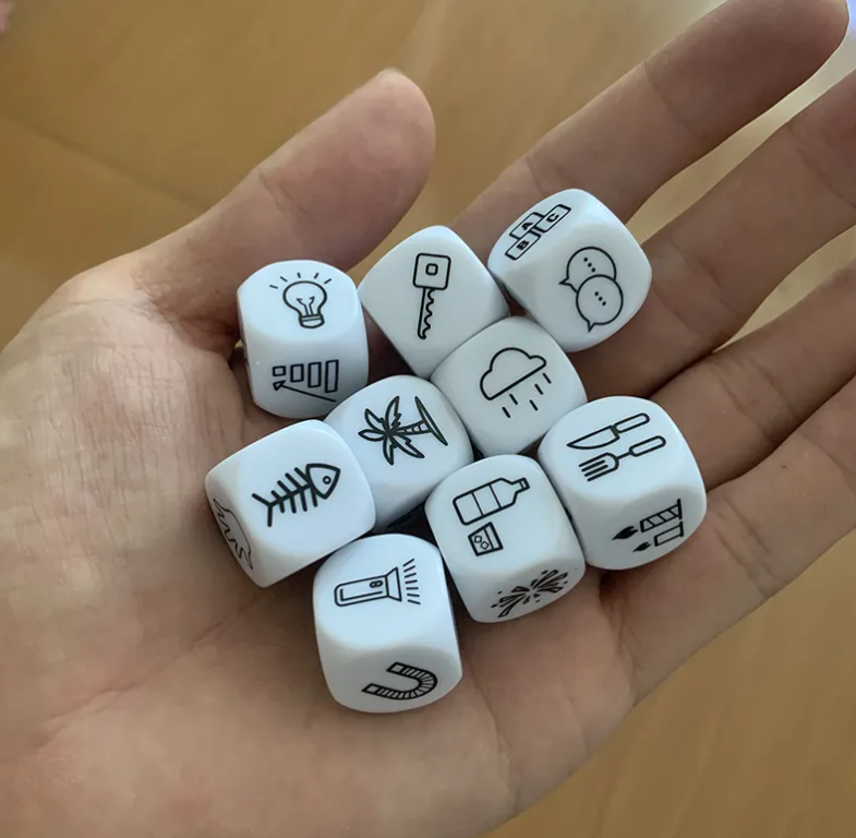 Los dados nos permiten crear una historia e ir añadiendo diferentes personajes, situaciones o contextos en función de los símbolos que vayan saliendo. Se trata de una actividad muy divertida ya que generalmente a los niños y niñas les encanta inventar y demostrar que la imaginación no tiene límites. Podemos usarlos para pasar la tarde en familia debido a que es un juego apto para todas las edades (con vigilancia de un adulto si hay niños muy pequeños cerca) o como recurso educativo en nuestras aulas o sesiones psicopedagógicas.