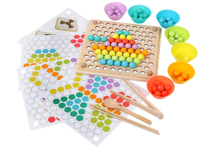 Por último y tal y como comentábamos antes, es importante ayudar a fortalecer las manos de nuestros peques, lo cual influirá positivamente en el agarre del lápiz y, por ende, en el trazado de las palabras. Por todo ello, os traemos este atractivo juego con el que los niños y niñas han de utilizar la pinza de madera para clasificar los diferentes colores.