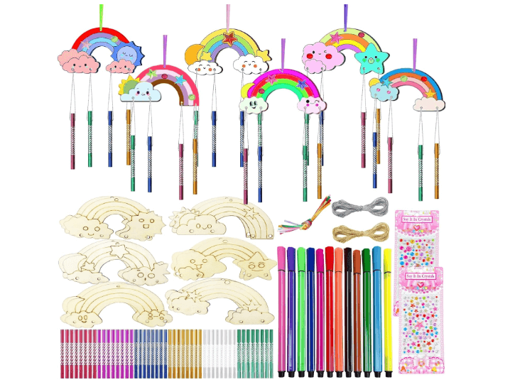Con este set de decoración los más pequeños de la casa podrán dar rienda suelta a su imaginación y pintar su propio arcoíris de madera.