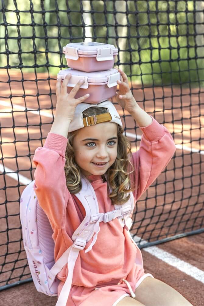 La gran novedad de este año es la caja de almuerzo estilo bento, perfecta para llevar el almuerzo al colegio o la merienda a cualquier actividad. Además, incluye una cajita interior separadora con un tenedor, ideal para llevar fruta o snacks, y es hermética para asegurar la conservación de los alimentos.