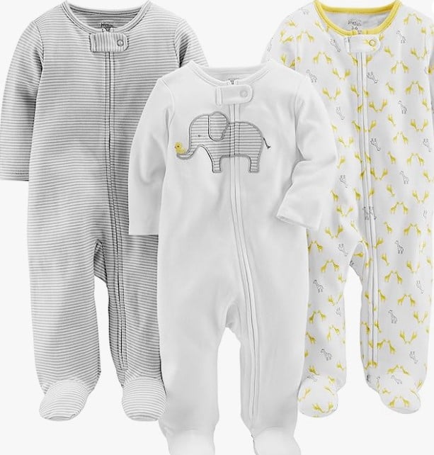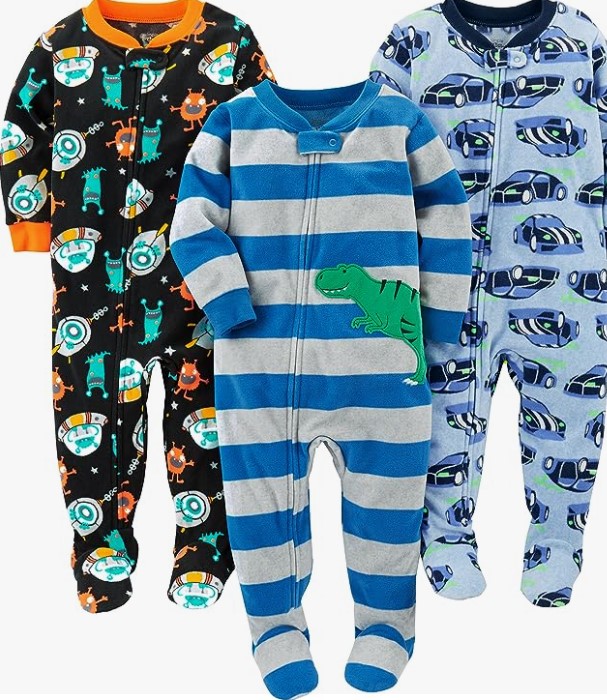 Los estampados variados, desde animales lindos hasta personajes divertidos, mantienen el interés visual de tu bebé mientras se prepara para descansar. La cintura elástica en los pantalones y los puños en las mangas mantienen todo en su lugar mientras tu bebé se mueve y juega.