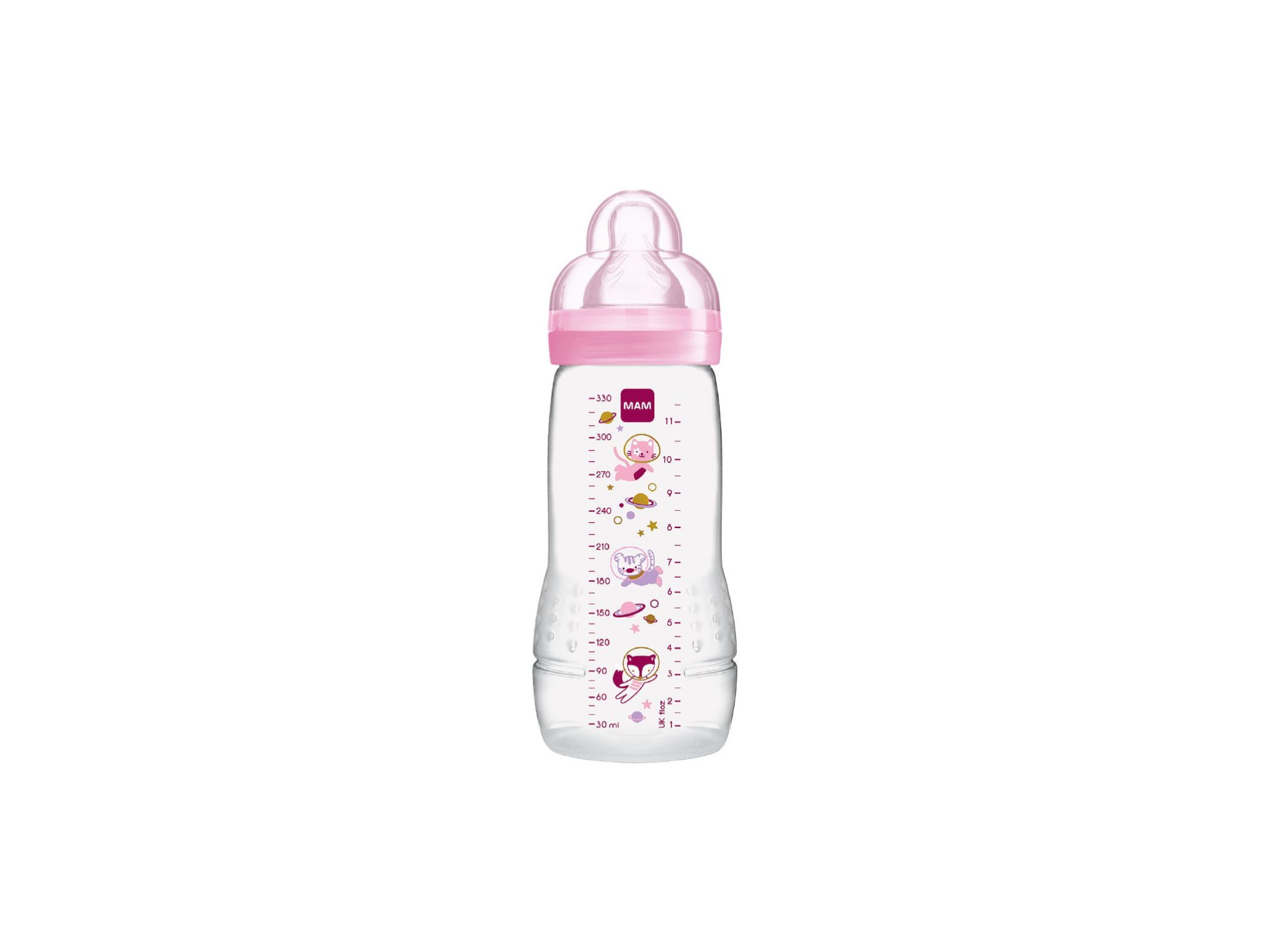 Easy Active está hecho de polipropileno con boca ancha. Se autoesteriliza en el microondas en solo tres minutos. La tetina es de silicona con una diferencia especial: es suave como la seda.Este modelo cuenta con forma ergonómica para facilitar que el bebé pueda agarrarlo con sus manitas.
