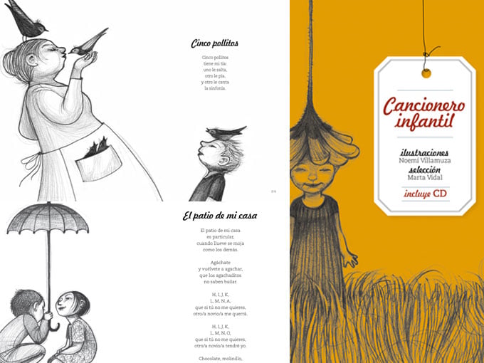 Cancionero infantil, ilustrado por Noemí Villamuza (Editorial La Galera).Una selección imprescindible de canciones populares, retahílas, canciones de regazo… Y maravillosamente ilustrado por Noemí Villamuza, una de nuestras mejores ilustradoras.
