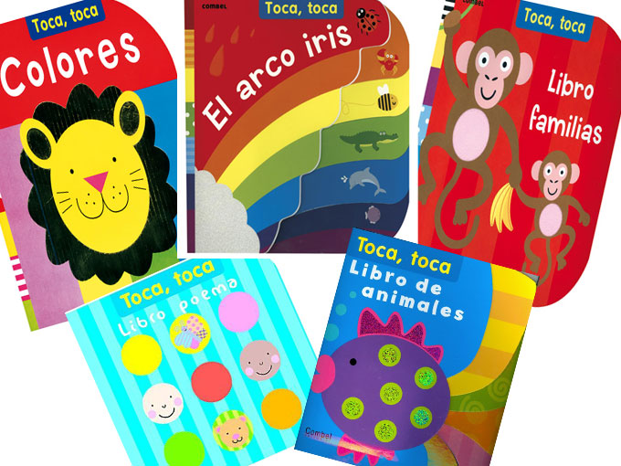 Toca-toca (editorial Combel). Se trata de un montón de libros distintos en la colección. Con texturas y vivos colores, perfecto para explorar.