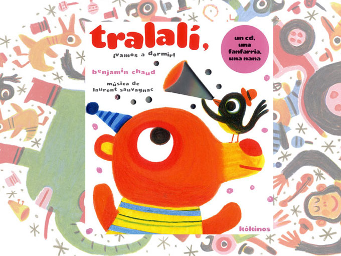 Tralalí ¡Vamos a dormir! (editorial Kókinos) de Benjamin Chaud.Una orquesta de animales, cada uno con su instrumento y su sonido. Un libro que invita a jugar con los sonidos y que también es una historia para ir a dormir.