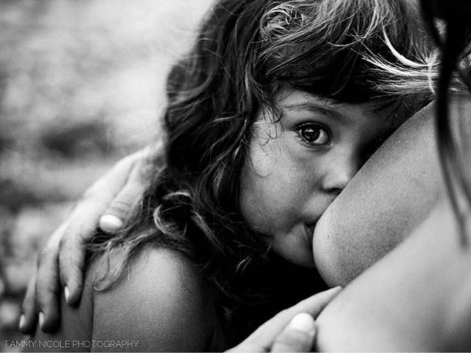 En esta fotografía podemos ver una niña mayor que sigue alimentándose mediante la lactancia materna. Y es que, la Organización Mundial de la Salud recomienda seguir dando el pecho hasta al menos los dos años.