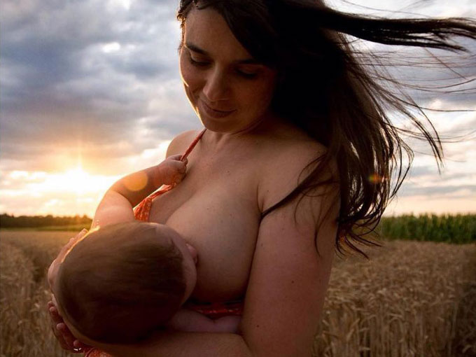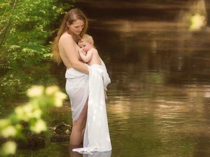 Y para dar el pecho no hace falta escondernos: es algo sano, natural que deberíamos poder hacer en cualquier momento. En esta fotografía se demuestra ya que el bebé está comiendo en un río.