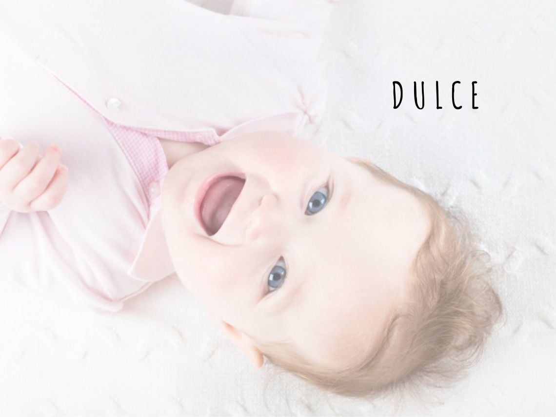 En este caso, más que un nombre es un sabor, pero también es un nombre con cierto recorrido en España. Es de origen latino "dulcis" y significa "La que es agradable y dulce".