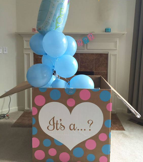Elige una gran caja y llénala con globos del color que quieras que represente a tu futuro bebé. Ciérrala y cuando todo el mundo esté presente, ¡SORPRESA! los globos descubrirán el sexo de tu futuro bebé.