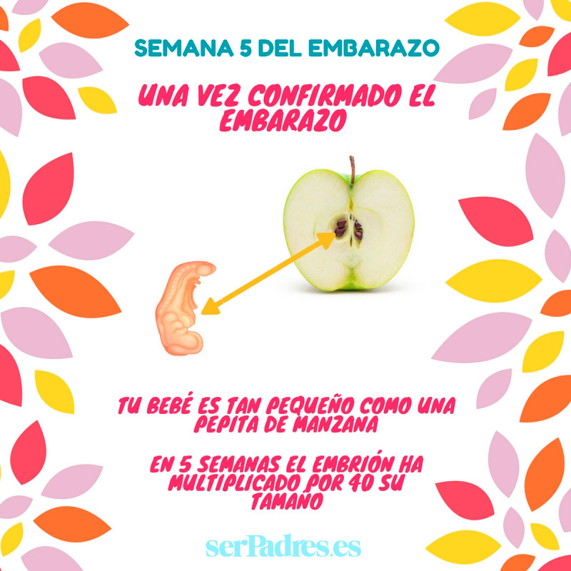 En la semana cinco de embarazo, tu bebé ya tendrá el tamaño de una semilla de manzana.