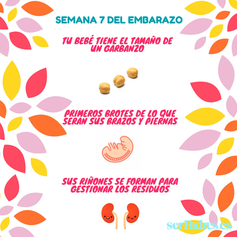 En la semana séptima de embarazo, el feto ya mide y pesa lo mismo que un garbanzo y comienzan a formarse sus riñones.