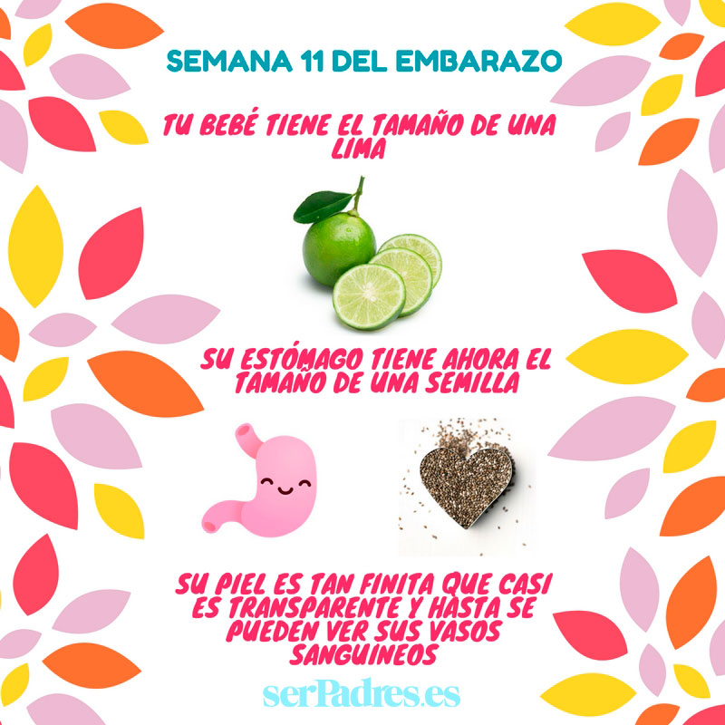 En la semana 11 de embarazo el bebé se asemeja a una lima. Ya va siendo más grande. Además, su estómago comenzará a tener forma.