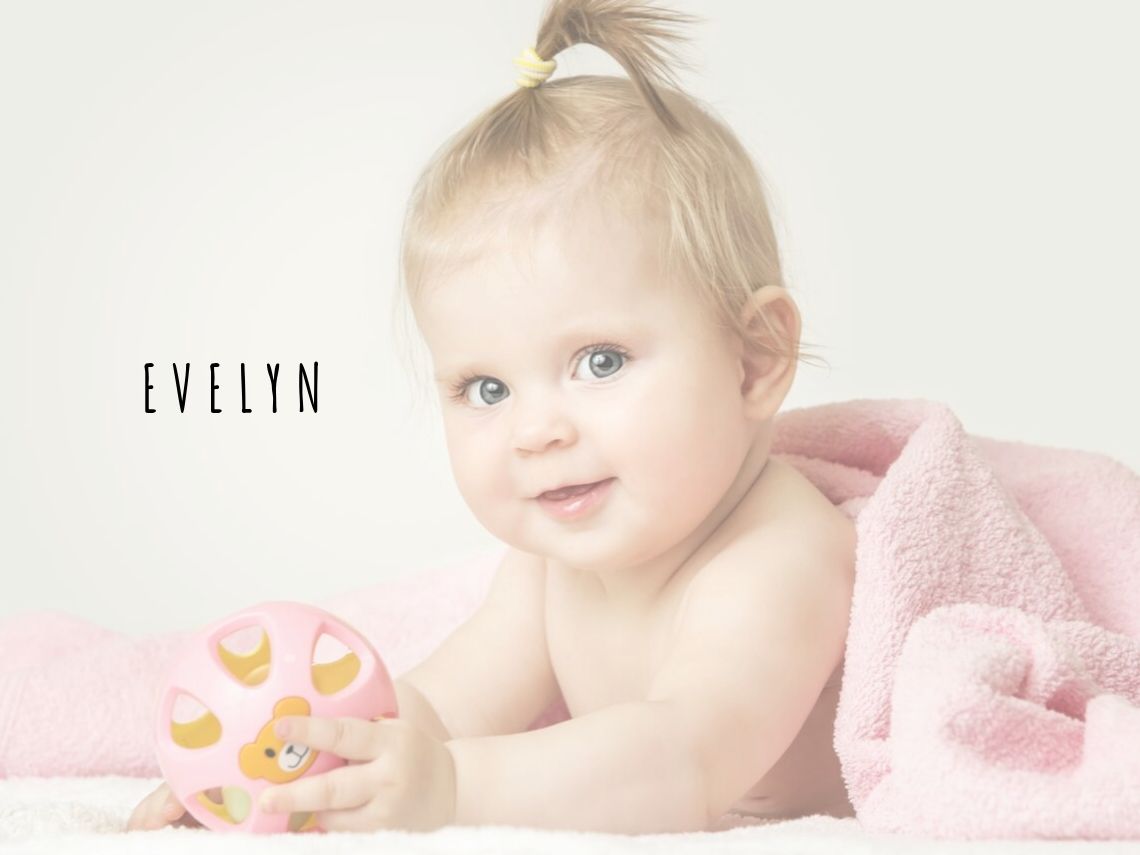 Nombre de niña céltico donde los haya, Evelyn es la variante de Eva. Significa persona agradable y de grata compañía.
