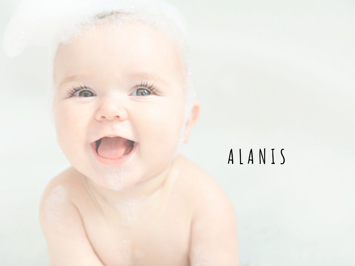 Este nombre de niña es famoso en el mundo entero gracias a Alanis Morissette, guitarrista, cantante, compositora, productora y actriz ocasional canadiense nacionalizada estadounidense. Significa preciosa, su variante es Alanys (con y) y su versión masculina es Alan.