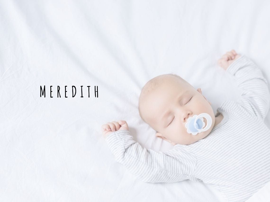 Aunque en Gales se sigue usando como nombre de niño, desde los años 20 Meredith (su variante es Meredydd) se usa más como nombre de niña en los países de habla inglesa. Su significado es guardiana o señora del mar.