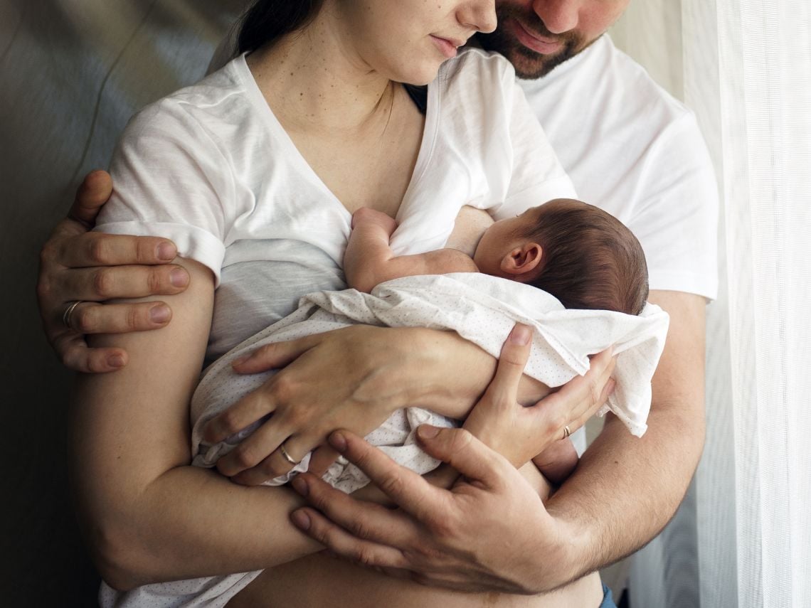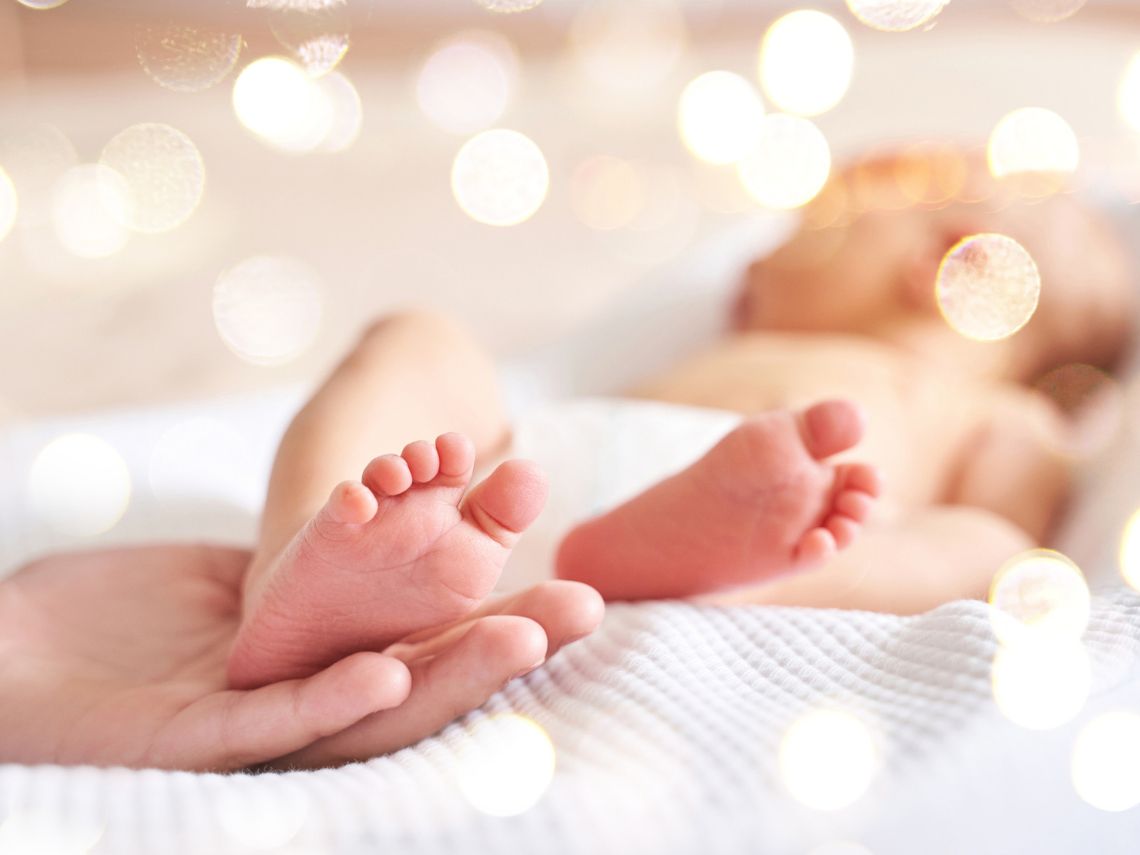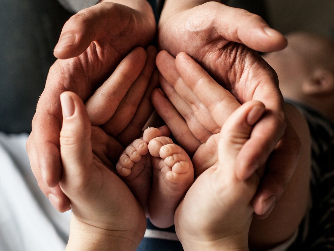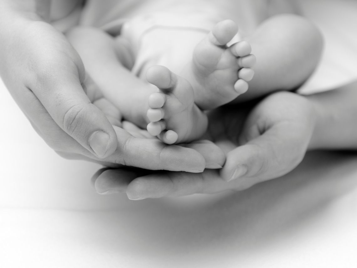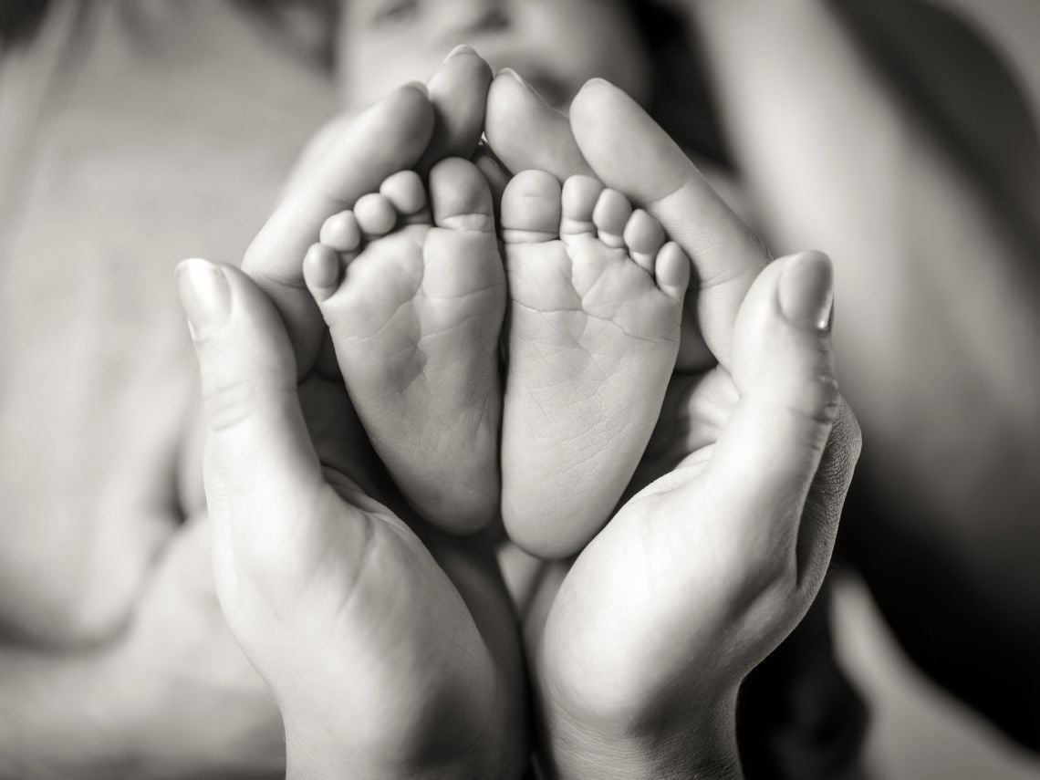 Mientras uno de los padres sostiene al bebé, el otro abrazará sus pequeños pies con sus manos.