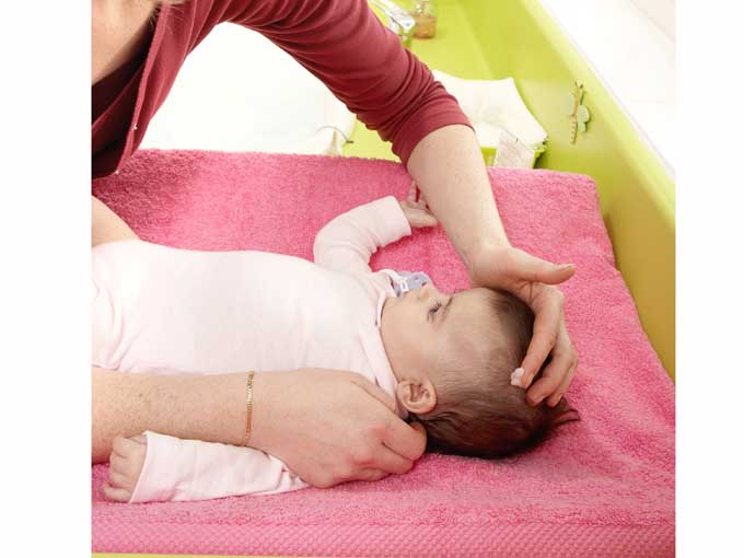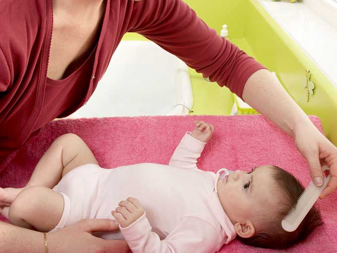 Por la mañana, después de haber aplicado vaselina la noche anterior, retira las escamas con un peine especial para bebés y lávale la cabeza. Repite la operación periódicamente. Además, un champú especial puede ayudar.