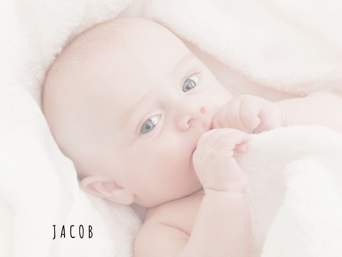 Su procedencia es hebrea y está muy relacionado con la religión, ya que significa “Dios protege” o “Dios ha protegido”. Si hacemos la traducción del hebreo, está formado por aqueb que significa “talón o planta del pie” o aqob, “sostener o suplantar”. Con el sentido de “ser sostenido”.De él derivan muchos nombres como Santiago, Yago, Diego o Jaime. Y tiene variantes en otros idiomas como en español e italiano con Jacobo y en alemán, Jakob.