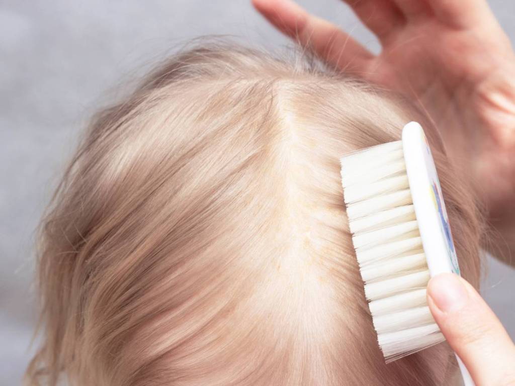 Es posible que te hayas fijado en que el cuero cabelludo de tu bebé ha empezado a tener la piel escamosa y un aspecto seco. De hecho, puede que veas incluso manchas o costras gruesas, grasientas y de color amarillento o marrón.