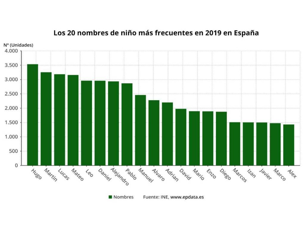 En lo que respecta a los nombres de niño, los nombres más usados en España para los recién llegados son los siguientes: en primera posición, Hugo, seguido de Martín, Lucas, Mateo, Leo y Daniel.
