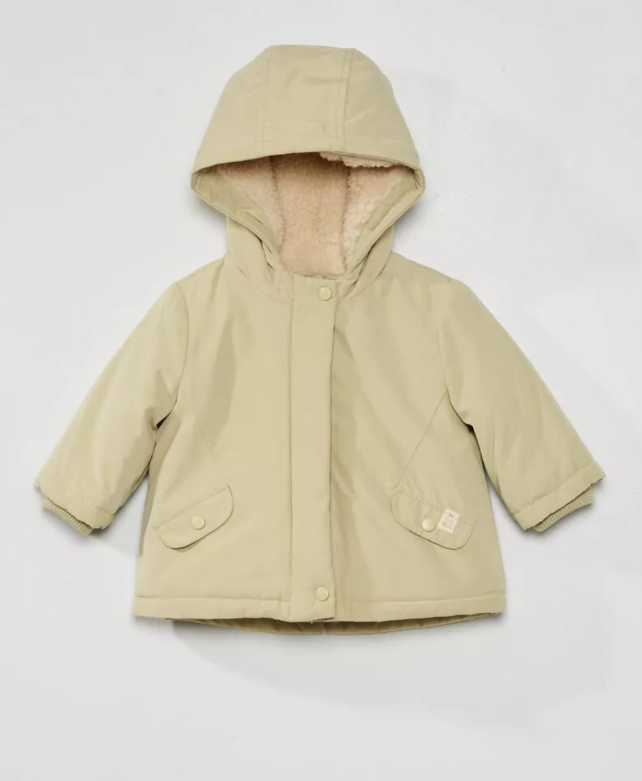 Parka de microfibra y pelo en color beige. Precio: 22 €.