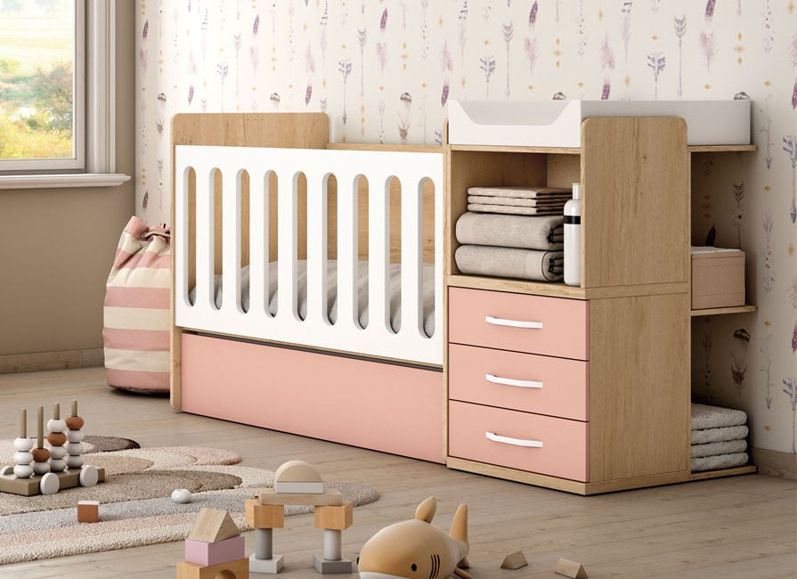 Si buscáis una cuna convertible con cambiador que se ajuste al espacio de una habitación pequeña, lo ideal es optar por un diseño compacto como este de Alondra, con una cuna que tenga medidas de 60x120 cm. Puedes jugar con los colores a vuestro gusto porque hay múltiples posibilidades. Y como ves, su precio es más alto, lo cual también os ayuda a haceros una idea de la enorme variedad de precios que podéis encontrar en el mercado de las cunas convertibles. Precio: 1.168,75 euros.