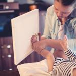 Seguidamente, presionamos la mano del bebé en la arcilla, en el centro. Es imprescindible empezar con la palma de la mano, girando la mano hacia arriba, para que los dedos sean los últimos en presionarla. Si no sale bien a la primera no pasa nada, ya que podemos extender la arcilla de nuevo, volviéndolo a intentar otra vez.