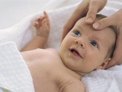 1. El cuero cabelludo se masajea suavemente con los dedos a través del pelo.2. Después apoyamos la cabeza del bebé sobre las palmas de nuestras manos y vamos masajeando con los pulgares la frente, desde el medio hacia las orejas. 3. Luego, desde ambos lados de la nariz hacia las orejas, volviendo a continuación a la frente para desde allí bajar a la barbilla.