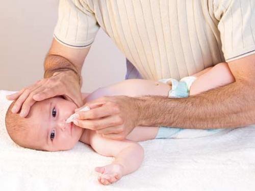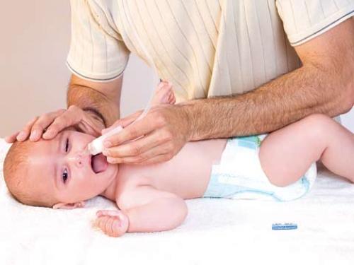 Para evitar que la mucosidad llegue al pecho, es esencial mantener la nariz limpia con suero y aspirar los mocos con dispositivos especiales. Acuesta al bebé boca arriba, gírale la cabeza hacia un lado y échale suero fisiológico para humedecer las fosas nasales. Conviene cerrarle la boca con una mano para que respire por la nariz. Si respira por la boca al echarle las gotas, cerrará instintivamente la nariz y no se hará una limpieza en profundidad.