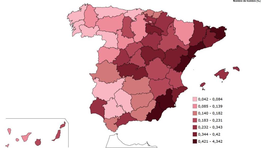 Si analizamos la distribución geográfica, actualmente hay 6.360 personas llamadas Amir en España, con una edad media de 8,7 años. Esto indica dos cosas: 512 bebés es el 8% de todos los hombres, niños atendiendo a la edad media, que se llaman Amir en España. El auge de su popularidad es sobresaliente. Y otro detalle de la edad media es que es muy baja, lo cual también está vinculado a su reciente popularidad.