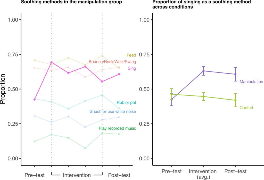 El estudio no solo confirma que el hábito de cantar a un bebé tiene beneficios a corto plazo, sino que su efecto puede ser acumulativo. Los padres y madres del grupo de intervención aumentaron progresivamente la frecuencia con la que cantaban a sus hijos, llegando a hacerlo en casi todos los momentos del día.