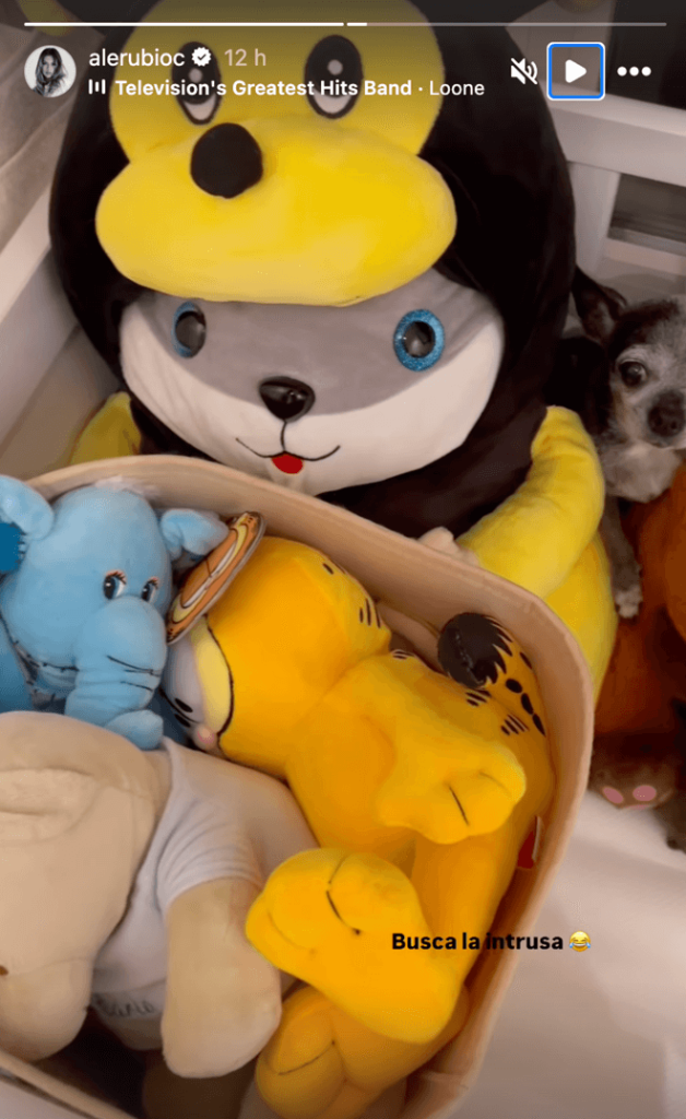 Hace unas horas, Alejandra Rubio compartió un stories de la cuna del bebé ya instalada en su habitación. En la imagen aparecen varios peluches y una pequeña perro chiguagua que descansa entre todos esos peluches.