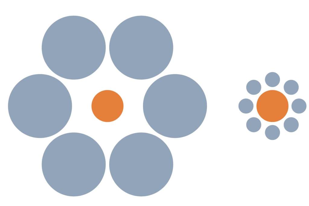 - Niños de 4 años: No se vieron afectados por la ilusión de la misma forma que los mayores. En lugar de considerar el tamaño relativo de los círculos, parecían fijarse en el área total cubierta por los elementos.