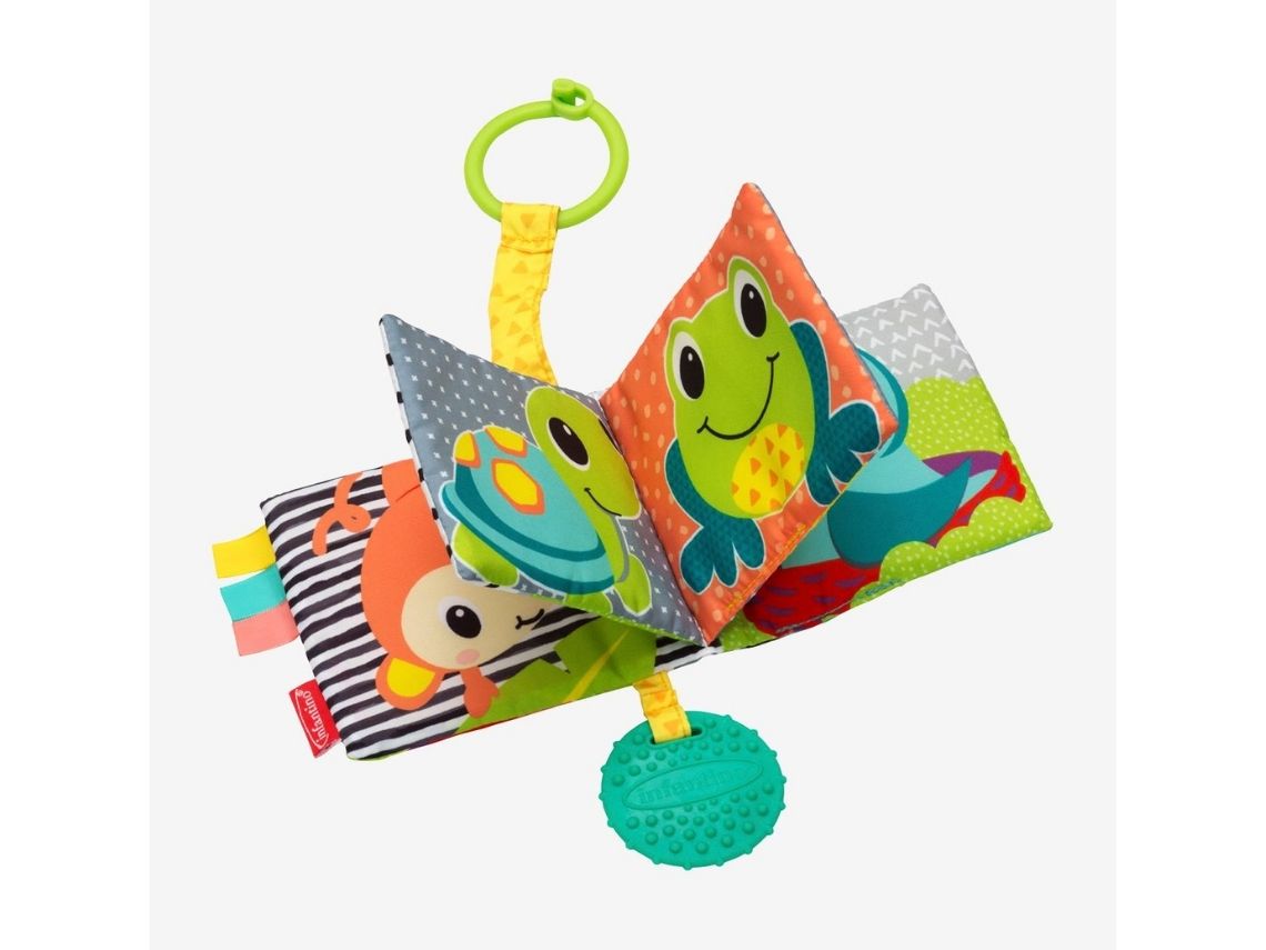 Incluye muchos colores llamativos, dibujos de animales, papel con textura que suena, una parte que emite ruiditos, un aro de dentición para calmar las encías del bebé… en definitiva, todo lo que el bebé necesita para estimular sus sentidos desde los primeros meses.- Editorial: Infantino