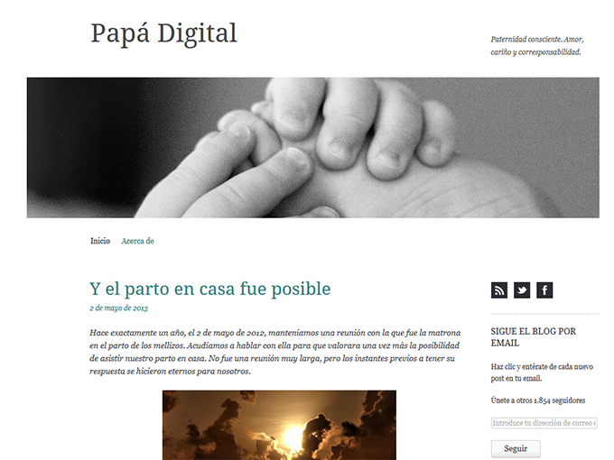 Un blog especial por tratarse de un hombre el que lo lleva. Él es padre de tres hijos y da sus experiencias y reflexiones a sus seguidores. Las entradas llegan por email y las reciben unos 1.600 usuarios. Sitio web: https://papadigital.wordpress.com/