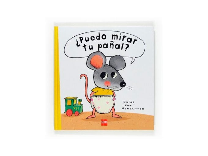 '¿Puedo mirar tu pañal?' (ed. SM) es un cuento infantil que ayudará a tu hijo a dejar el pañal. Se trata de un ratón muy curioso va mirando en el pañal de los animales, algo que el niño también hará bajando las solapas y descubriendo cómo es la caca de cada uno. Escatológicamente divertido, se acabará descubriendo que el ratón  usa el orinal y por eso su pañal está seco.