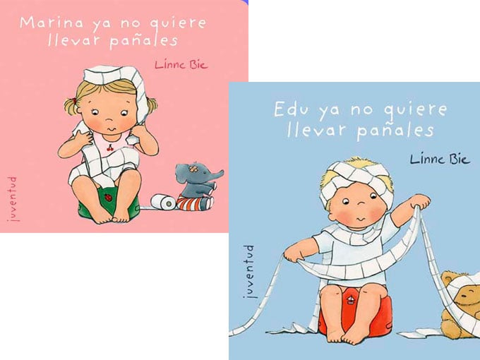 Los dos títulos 'Marina o Edu ya no quiere llevar pañales' (ed. Juventud) son dos libros en versión niño y niña, que ilustran todo el proceso de sentarse por primera vez en el orinal. Destaca por su naturalidad al describir las ocasiones en las que el niño o la niña sienten ganas de hacer pis pero no consiguen llegar a tiempo al orinal, hasta que al final logran hacerlo con éxito.