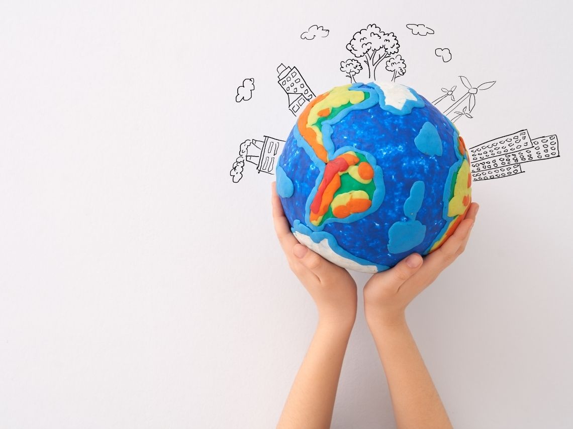 Fomentar el cuidado del entorno en los niños a través de las manualidades siempre es una buena opción. De hecho, tan sólo deberás comprar plastilina de colores o imprimir alguna ficha para que coloreen el planeta, sus bosques y playas y conecten con la realidad del entorno en el que vivimos.