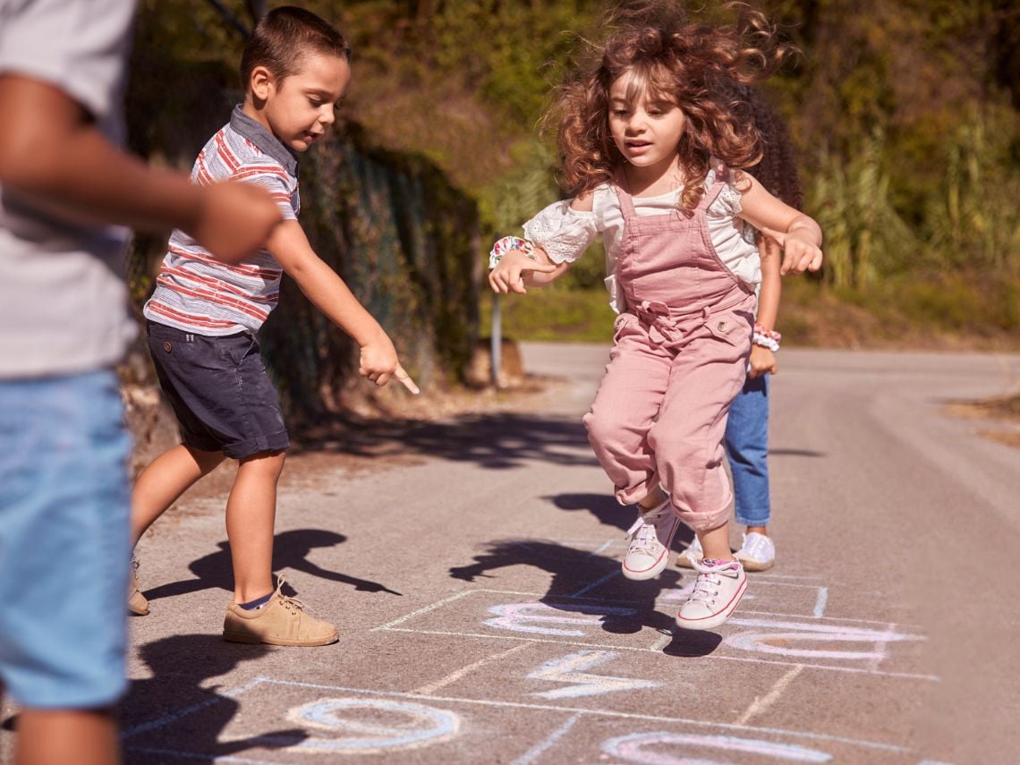 Siguiendo el ejemplo anterior, podemos proponer la práctica de alguno de los juegos de toda la vida: la rayuela, el pilla-pilla… Se irán moviendo a la vez que vuelven a su ser.