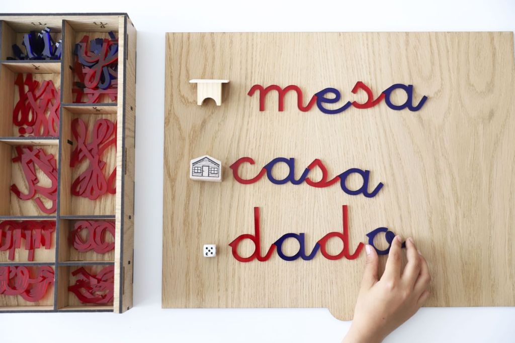 Una vez que los trazos de las letras están bastante integrados, podemos pasar al alfabeto móvil, otro material Montessori perfecto para enseñar a leer a los más pequeños. “Un alfabeto formado por letras de madera recortadas que permiten al niño empezar a formar palabras sin necesidad de alcanzar la habilidad motriz necesaria para realizar el trazado con un lápiz en el papel”, asegura Zazu Navarro.